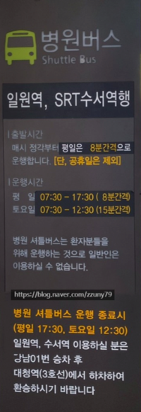 서울 밖에 사시는 분들은 SRT 열차를 이용해 수서역으로 방문하시면 편리합니다. 수서역에는 삼성서울병원을 왕복하는 셔틀버스가 있습니다.