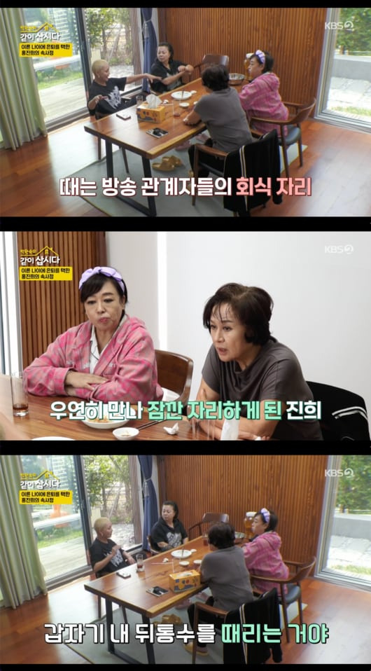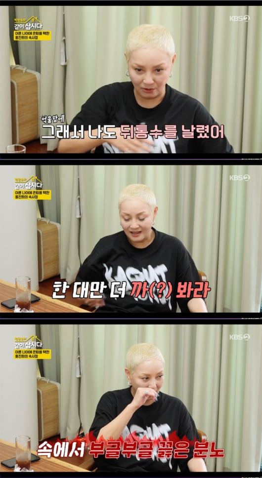 홍진희 씨는 KBS2 '박원숙의 같이 삽시다' 프로그램에 출연해 과거 방송국 관계자들과 함께 했던 회식 자리에서 발생한 불미스러운 일을 털어놓았습니다. 그녀의 말에 따르면, 어떤 PD가 그녀에게 지속적으로 술을 권하다가 갑자기 뒤통수를 때렸다고 하는데요. 이에 홍진희 씨도 반사적으로 상대방의 뒤통수를 때렸고, 이런 일이 반복되었다고 합니다.